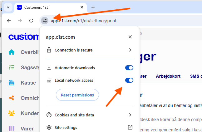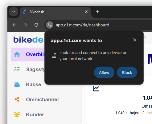 En ny opdatering er kommet til Google Chrome, hvor man bliver spurgt om du vil tillade at C1st/Bikedesk må få adgang til enheder på dit lokale netværk.